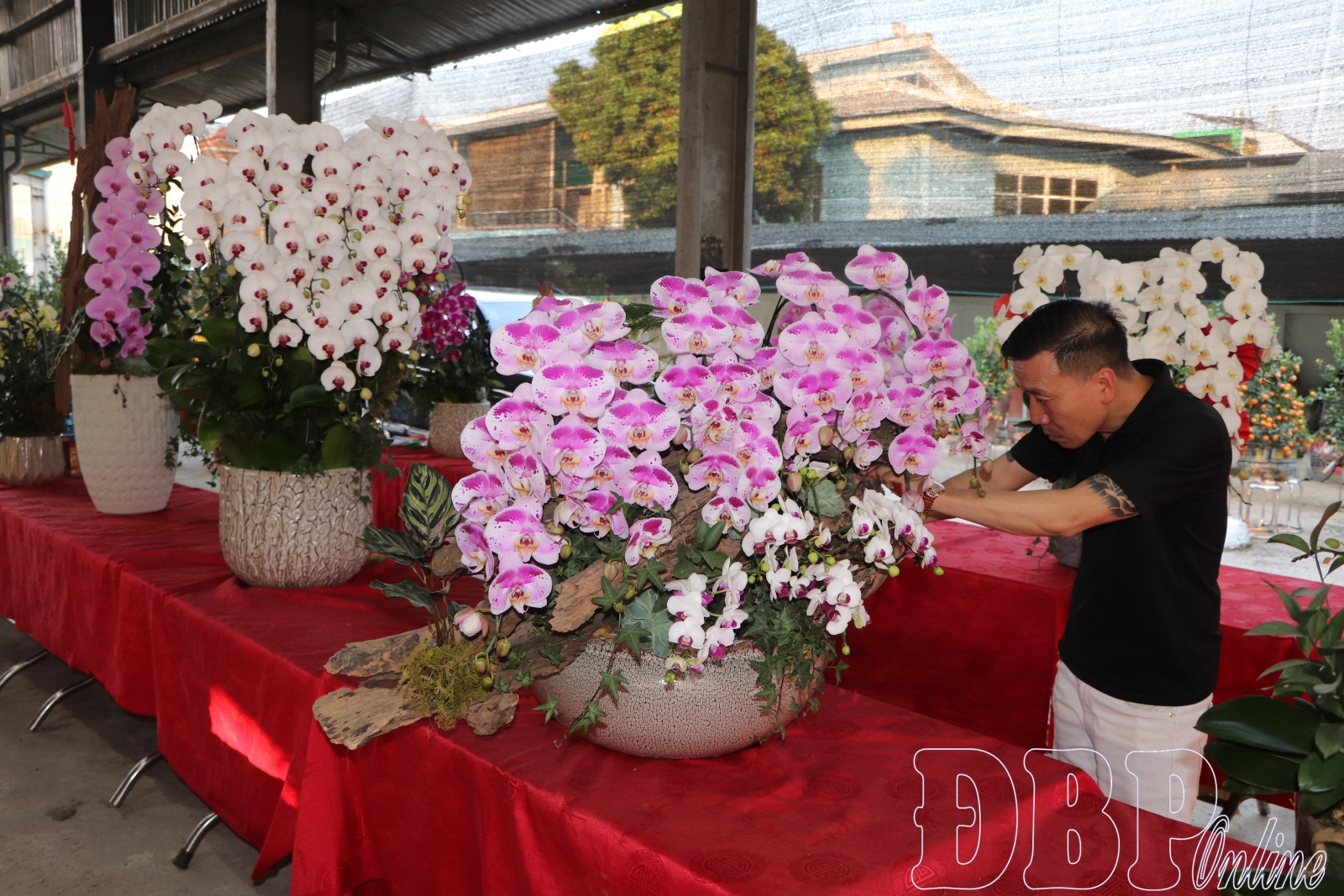 About two weeks before the Tết holiday, the Điện Biên market has grown even more vibrant as unique and strange ornamental plants from many provinces and cities have poured in. Famous peach gardens from Sơn La, Lào Cai, and Hà Nội, ornamental kumquats from Hưng Yên, and orchids and yellow apricots from the lowlands have converged at streets, flower markets, supermarkets, and commercial centers, providing consumers with many choices. The richness in species, sizes, and styles has made this year’s market even more attractive. Nguyễn Văn Thắng, a merchant near Mường Thanh bridge, noted that the market has seen positive changes in both scale and variety. While it previously revolved around peaches and kumquats, it now includes chrysanthemums, lilies, gerberas, poinsettias, and especially phalaenopsis orchids in many colors and pot styles to serve the increasing needs of customers. Nguyễn Văn Thắng added that he tries to keep prices stable and provides careful advice to customers on how to care for the plants so they remain beautiful throughout the holiday.