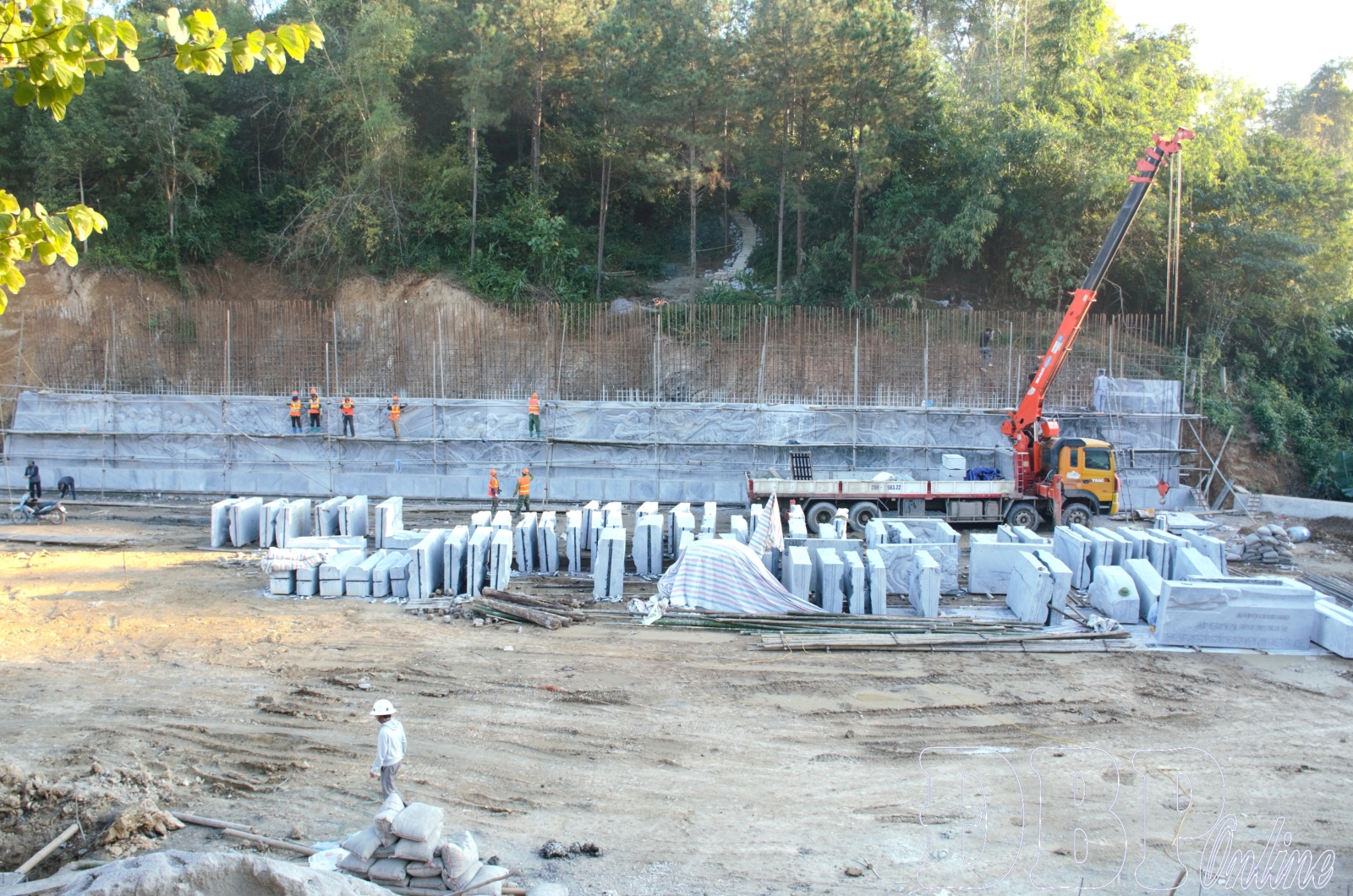 To date, items such as: the incense stele at strongpoint 1 - where Hero Phan Đình Giót sacrificed his life have been completed; the repair of the reception house, pouring concrete for the shaped embankment slope, deploying the drainage system... are being accelerated. Tô Văn Thuận, Management Board of Civil and Industrial Works Projects, said: Currently, the rough carving part of the relief item has been completed and is being installed at the site. Items like ground leveling, concrete revetment, the wooden part of the incense house, and paving stones on the roads leading up to the strongpoints are all being implemented simultaneously. In the coming time, the unit will continue to urge contractors to speed up progress, strengthen supervision, and perform disbursement and payment according to regulations.