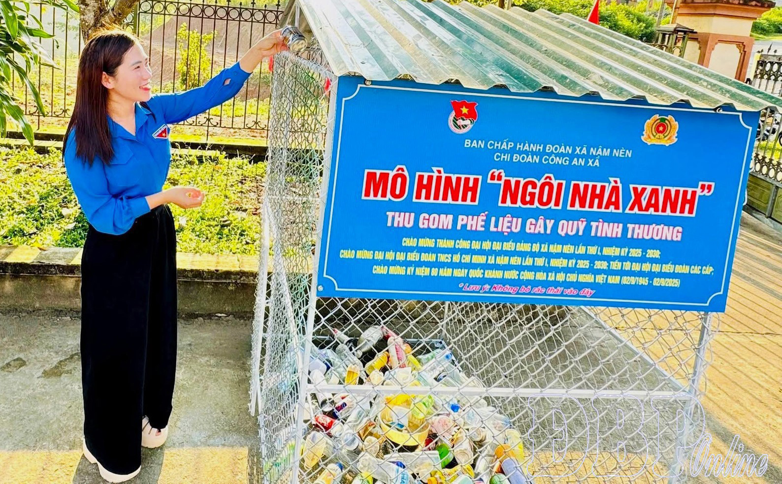 Many effective environmental protection models have been built and replicated, such as the “Green House” model implemented by the commune Youth Union at three school sites and two government offices. At each point, a mesh house is designed simply and conveniently for collecting plastic bottles and cans. Hạng Thị Chua, the Secretary of the Nậm Nèn Youth Union, stated that through the collection and sale of scrap from the “Green House” model in 2025, a fund of more than VND 5 million was created to support students and community activities.
