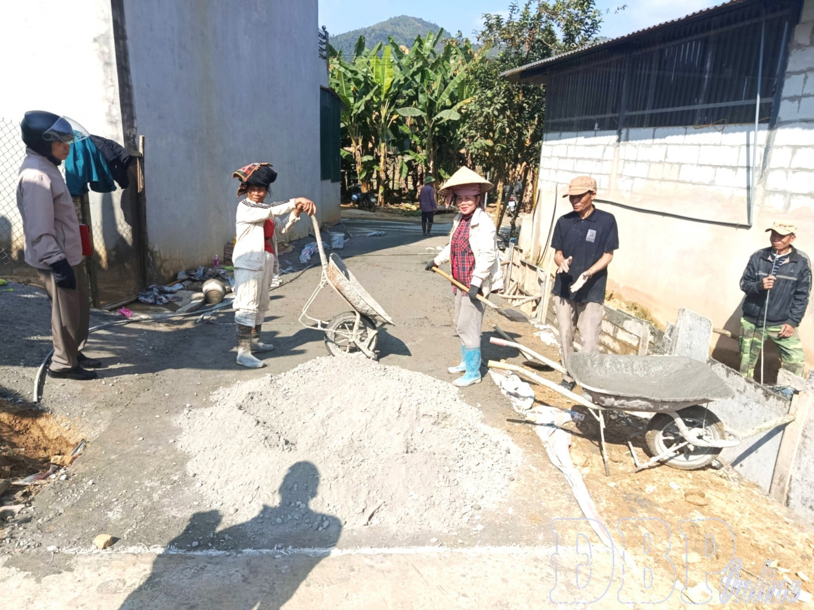 Under the dry sun of the early days of the year, the concrete road in Đắng village (Nà Tấu commune) appears solid and clean, connecting the inner village area with the Ten village residential area. On the small construction site in the middle of the village, people with hoes and shovels, some mixing concrete, others transporting materials, create a busy and excited working atmosphere. The work is hard, but everyone is enthusiastic, joining hands with the desire to soon complete the road they have dreamed of for many years.