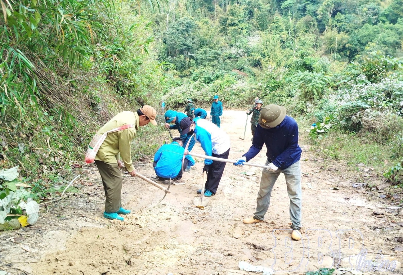 In the early days of January 2026, the militia force, associations, and unions of Thanh Yên commune, together with officers and soldiers of the Pa Thơm Border Post and Battalion 3 (Regiment 82), coordinated with a large number of people in Pa Thơm and Huổi Moi villages to launch a campaign to repair rural traffic roads. The forces proactively mobilized manpower, deployed work according to the plan, creating a vibrant emulation atmosphere right from the early days of the year. Everyone focused on leveling and repairing the damaged road surface, clearing drainage ditches, clearing trees obscuring vision, and handling landslide and cracking points, ensuring safe and convenient travel.