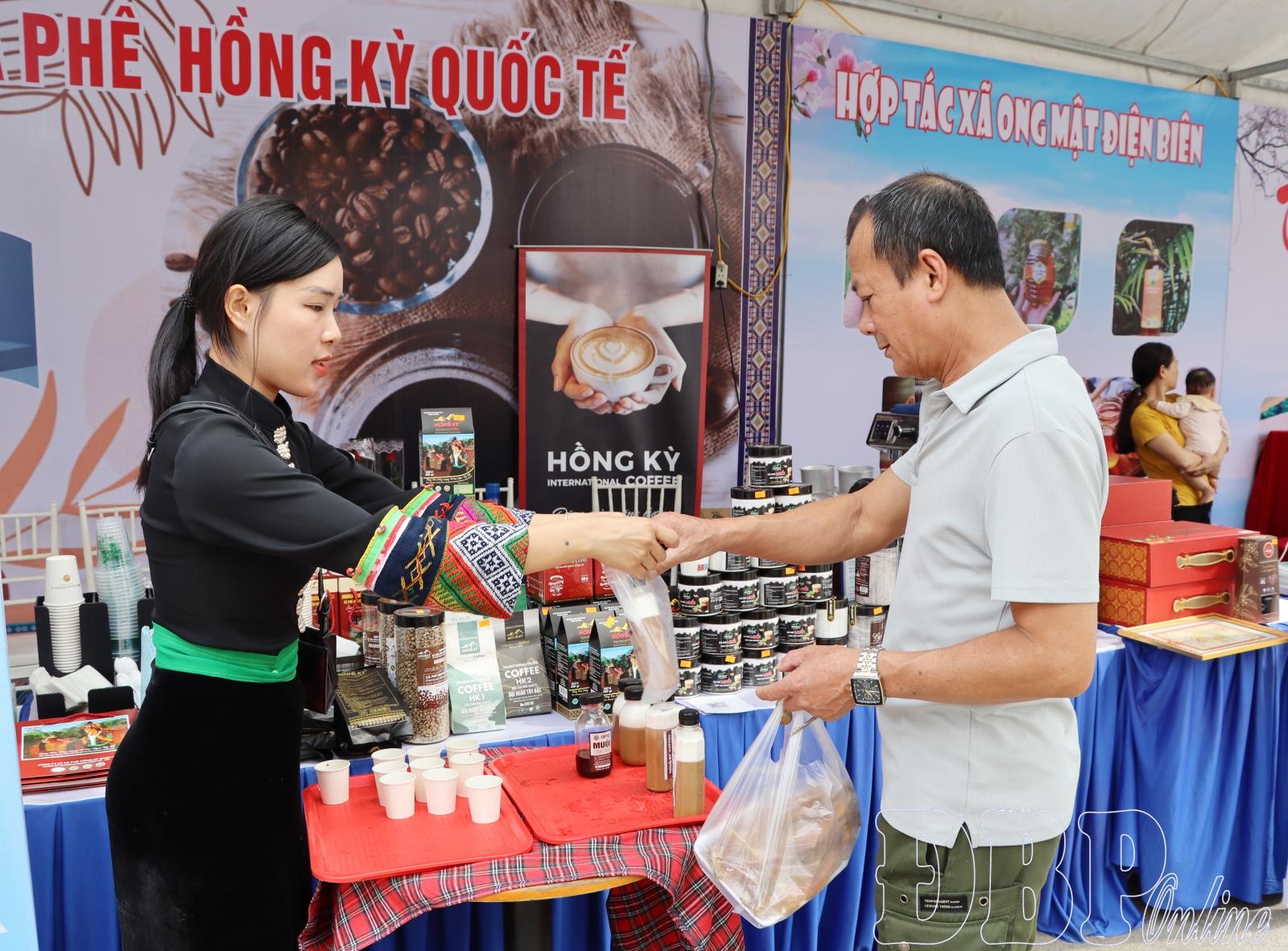 The OCOP display area features numerous stalls introducing the province’s signature items, ranging from Điện Biên rice, tea, and coffee to honey, herbal remedies, and traditional handicrafts. This diverse array offers a vivid picture of the agricultural potential and unique specialties of the highlands. From the very first days, these areas have been consistently crowded with people looking to explore and shop. Many tourists have expressed great interest in directly learning about the production processes, the origins of the products, and the unique stories behind each local delicacy. These booths serve as more than just exhibition sites; they have evolved into interactive spaces connecting cooperatives and businesses with tourists, distributors, and potential partners.