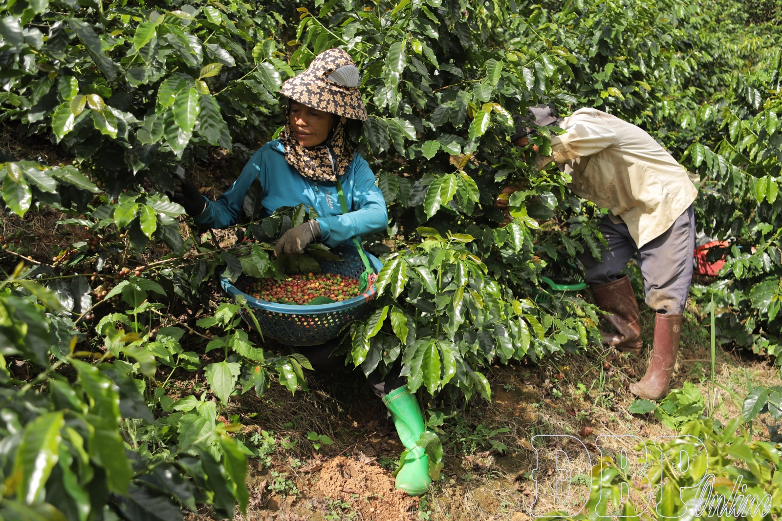 When harvest season arrives, the entire commune buzzes with activity, from picking and transporting to buying and selling. At the start of the season, farmers mainly handpick the cherries to ensure only ripe fruits are harvested, preserving product quality. Moving from row to row, they pick the coffee cherries and pour them into baskets before bagging and weighing them for sale.