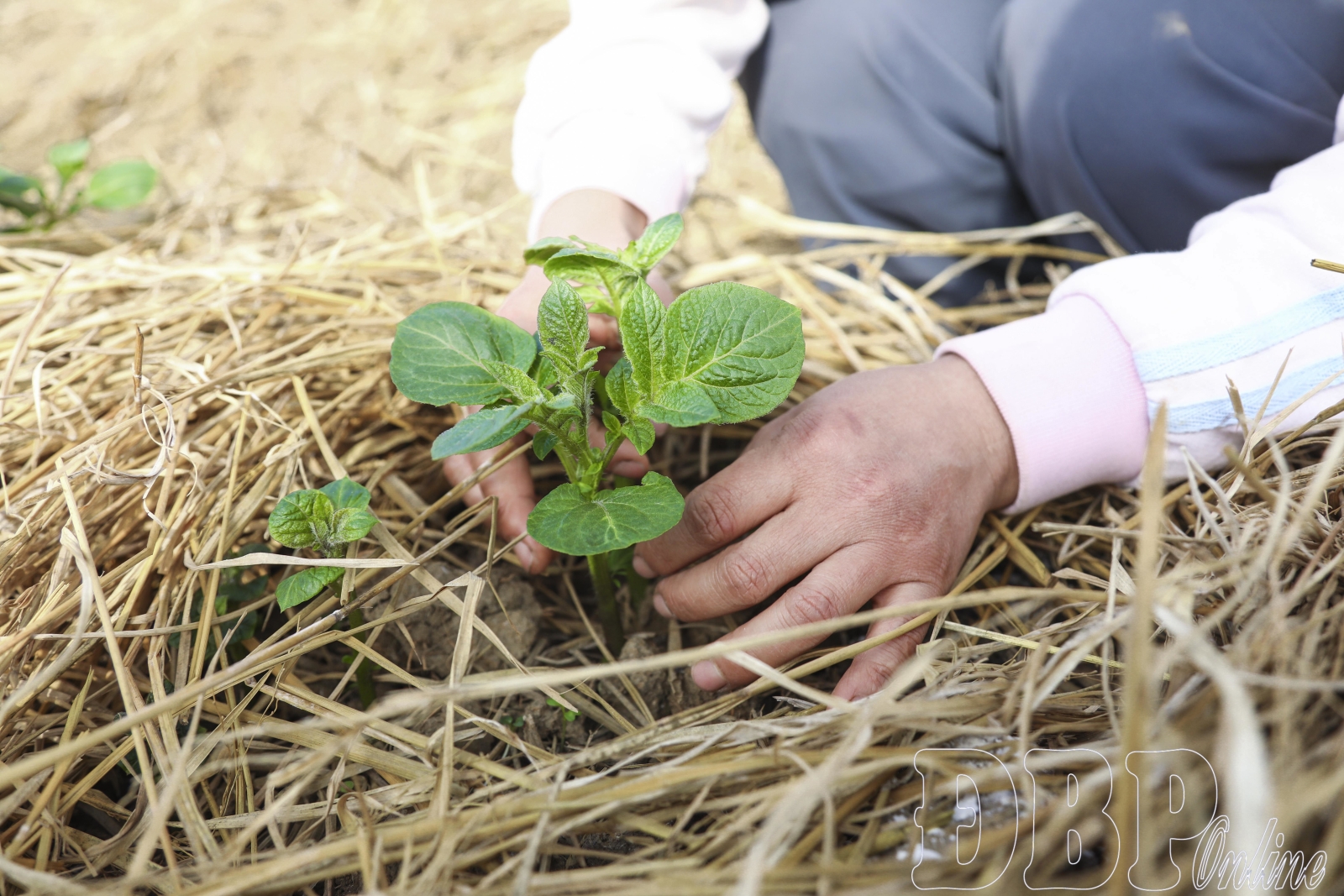 Ly Thị Bấu, from Háng Lìa A village, shared: “Previously, my family also tried to grow a second rice crop, but there was no harvest. Seeing our land left idle felt like a waste, but we didn’t know what to plant. At the end of last year, the commune and the village head encouraged experimental potato planting, so my family participated by planting 5,000m2. Initially, I was confused about how to provide proper care, but during the process, there are always officers working alongside and providing technical guidance, so my family feels very secure. Looking at each row of lush green, well-growing potatoes, everyone and I are very happy.”