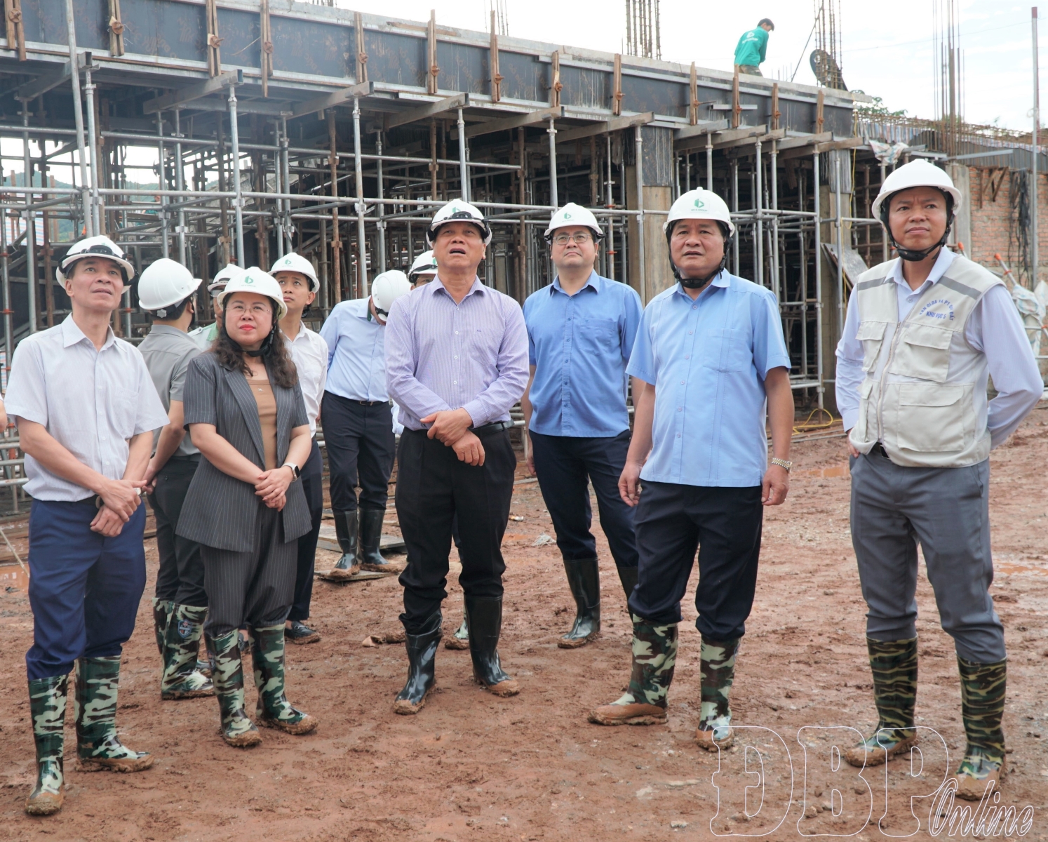 Chairman Lê Thành Đô commended the contractors and local authorities for their determination in implementing the project. He requested that all units ensure the construction progress meets the planned schedule and mobilize equipment, machinery, and workforce to work in three shifts. The project investor was reminded to strictly follow the approved master plan and increase green space in the school area, while the Department of Construction was tasked with strengthening quality inspection.