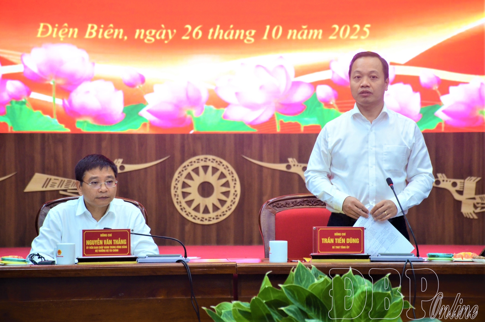 Opening the working session, the Minister of Finance emphasized: The goal set for Điện Biên in 2025 is to achieve a GRDP growth of 7.5%, and double-digit growth in the following years from 2026 to 2030. The Government always accompanies localities regarding mechanisms and policies, removing bottlenecks, and providing maximum support for localities to achieve their set targets. On that basis, the working session aimed to analyze, evaluate, and identify the causes of the difficulties and obstacles that Điện Biên is facing, thereby proposing solutions to help the province overcome these challenges.