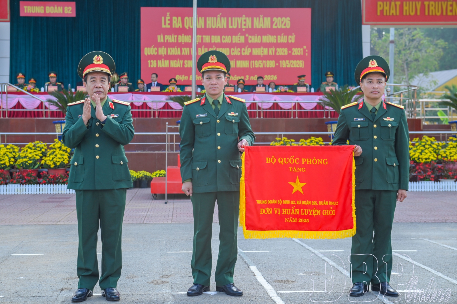 As a highlight of the ceremony, Senior Lieutenant General Lê Đức Thái presented the “Excellent Training Unit” flag to Regiment 82 to honor their outstanding achievements in training and comprehensive unit development.