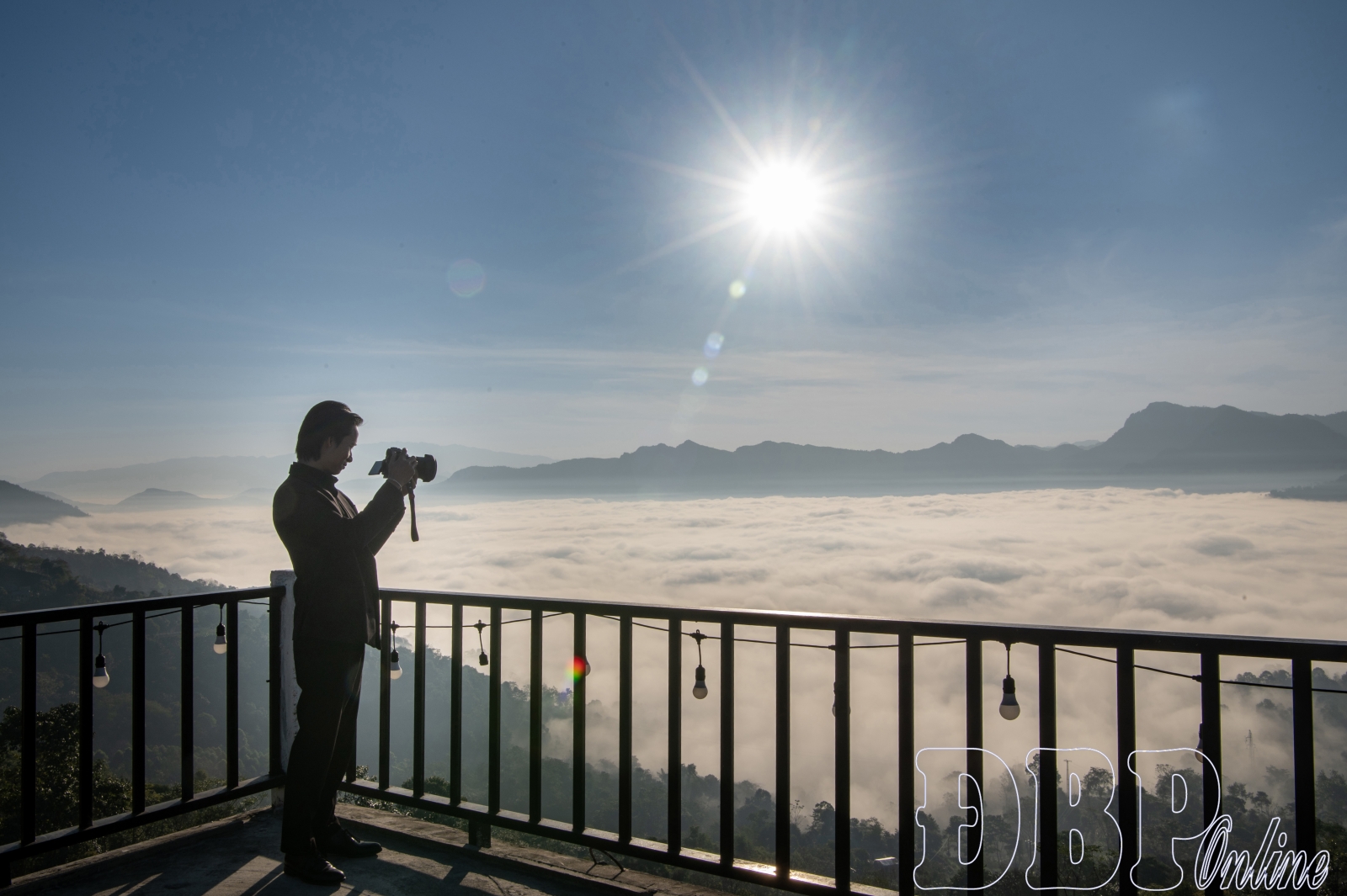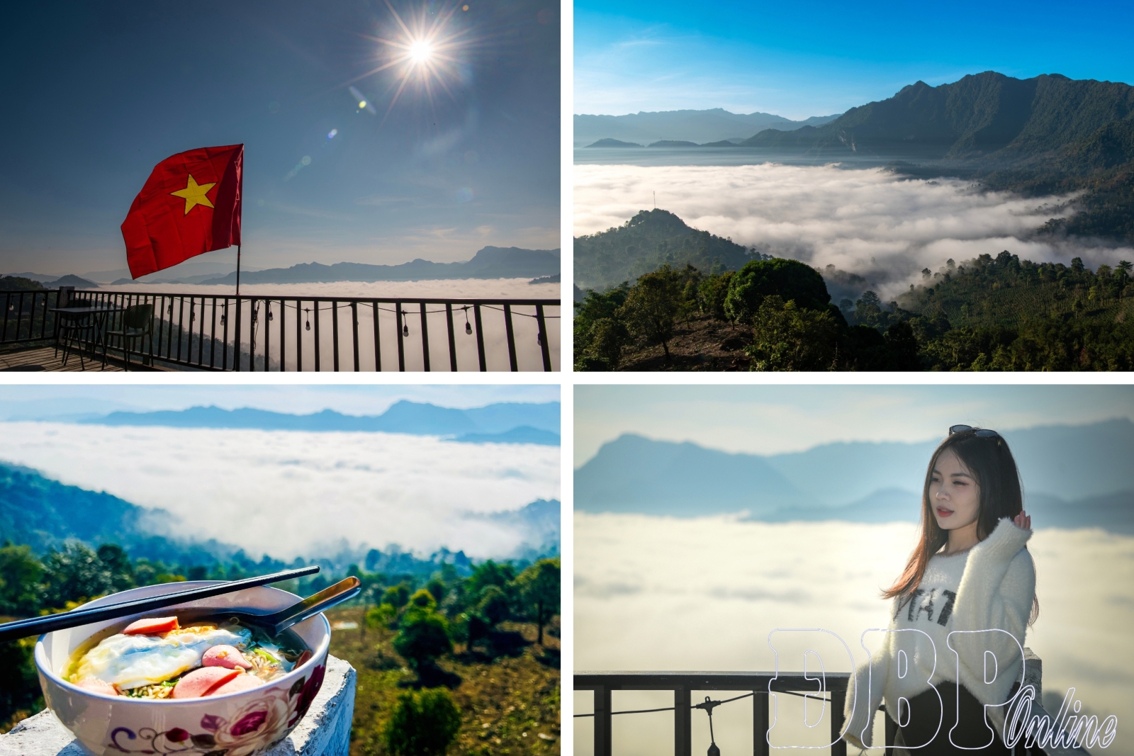 Nearly 6a.m. The early winter cold still clings to the patches of mist lingering on the mountain slopes. On the slope leading up to Tằng Quái Pass, each motorbike headlight beam cuts through the mist, flickering like small stars searching for dawn. People go up the pass when the sky is still thick with night to catch the moment the sun touches the sea of clouds - a wondrous phenomenon that nature gifts exclusively to Điện Biên. Therefore, even though it was still dim, the familiar stopover - Hải An coffee shop - on Tằng Quái Pass already had over a dozen people gathered. They were tourists, backpackers, photographers... all waiting anxiously as if for a performance everyone knew would not last long.