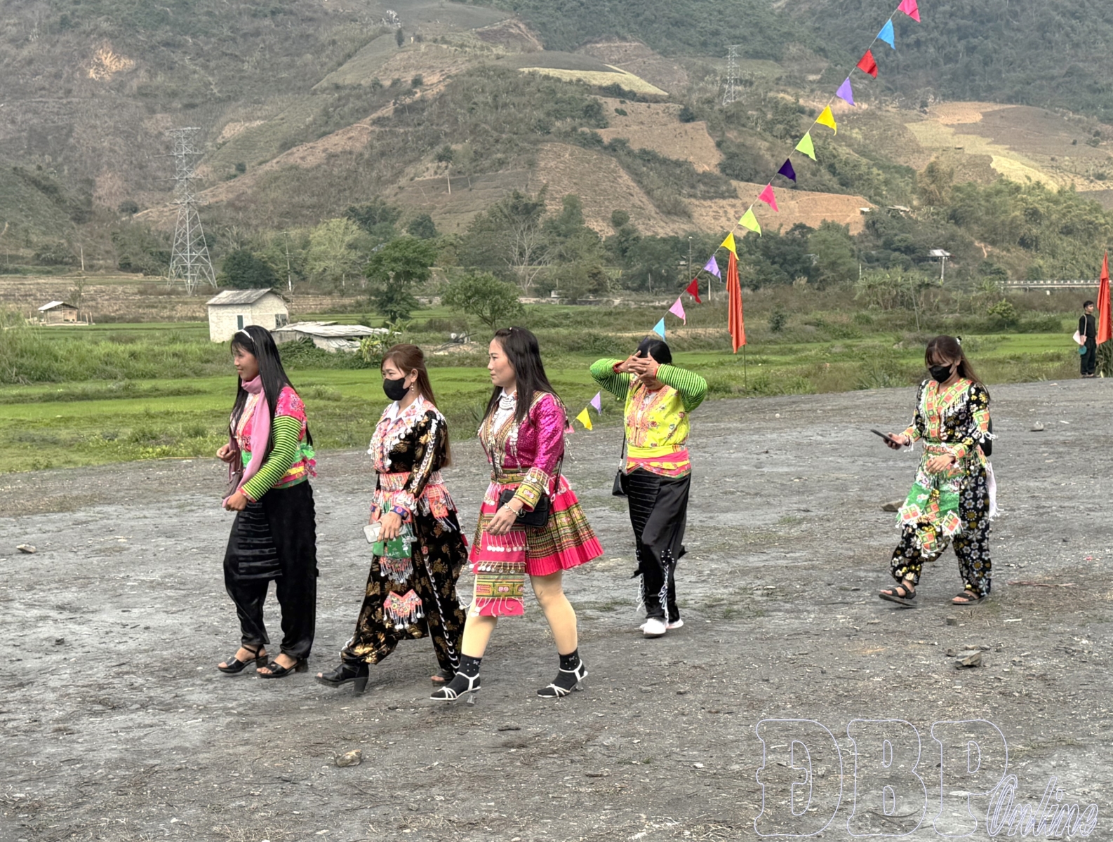 Under the theme “Spring of Love,” the Na Sang commune spring festival has attracted a large number of residents and tourists this year. From early morning, the festival grounds have been filled with people dressed in colorful traditional attire. Lù Thị Thoản from Na Pheo 2 village and her peers busily prepare colorful cloth balls for the traditional ném còn game. She shares that every year, they eagerly prepare the most beautiful balls to send forth wishes for favorable weather, bountiful harvests, and family happiness in the new year.