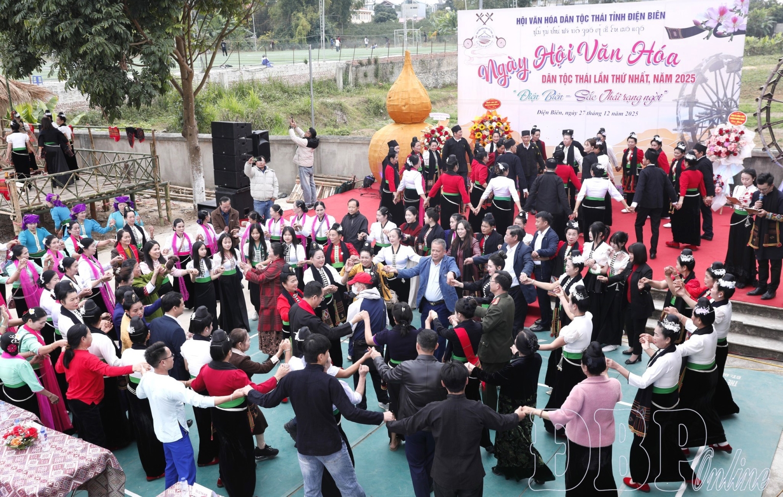The 1st Thái Ethnic Cultural Festival of Điện Biên province, 2025 has closed, but the echoes still spread, kindling new vitality for community cultural life. The festival space was bustling with the sounds of drums and gongs blending with graceful xòe dances, attracting a large number of people and tourists to participate. Along with a rich chain of activities, harmoniously combining the ceremonial and festival parts such as the Hạn Khuống art performance, 6 ancient xòe dances; practicing ancient Thái writing; folk song, dance, and music festivals; traditional costume performances..., the festival introduced, promoted, and honored the unique traditional cultural values of the Thái ethnic community.