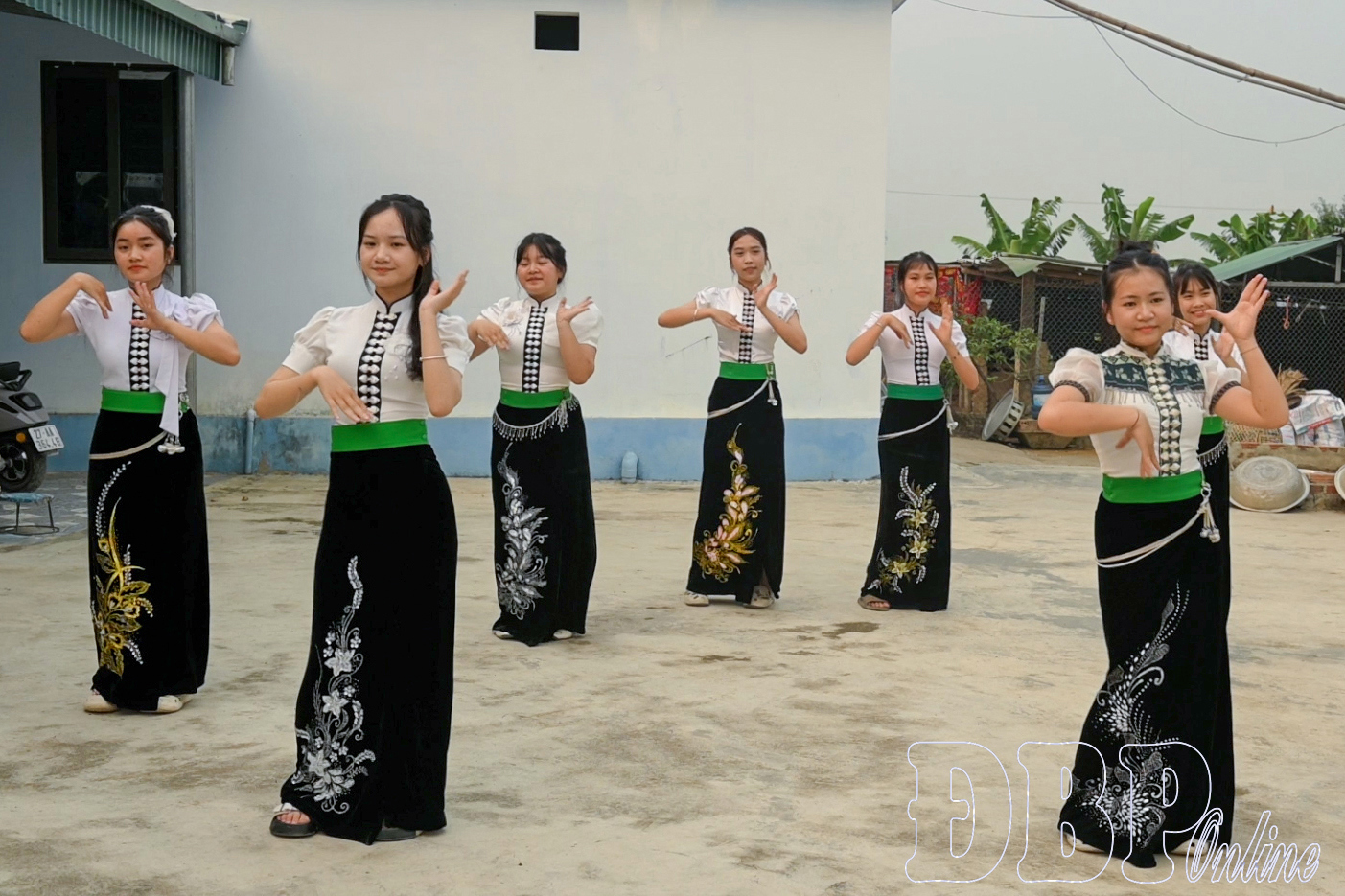 The Ban Trắng Điện Biên dance group practicing in preparation for their performance.