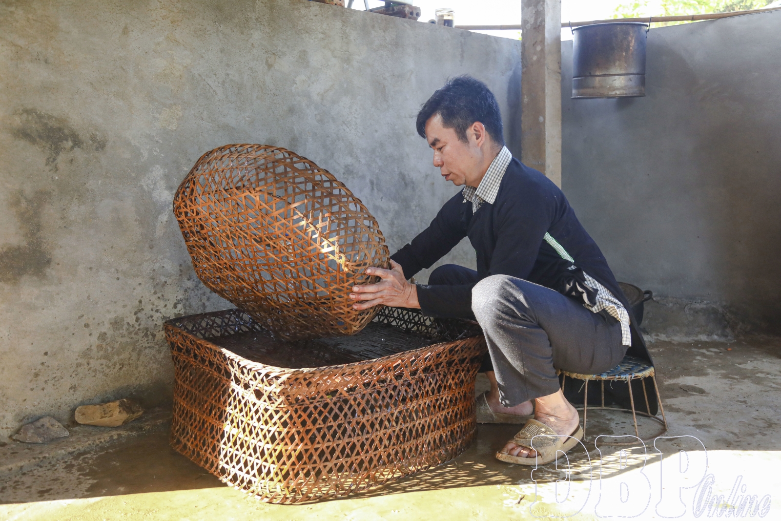 When the sun is out, the men take advantage of the light to weave bamboo trays and baskets for sale or personal use. These handcrafted trays are meticulously made and hung over the kitchen hearth to ensure durability. When the lunar new year arrives, the bamboo tray is brought down and washed clean to hold offerings and the holiday feast. Replacing an old tray during this time is seen as a prayer for new beginnings and abundant luck.