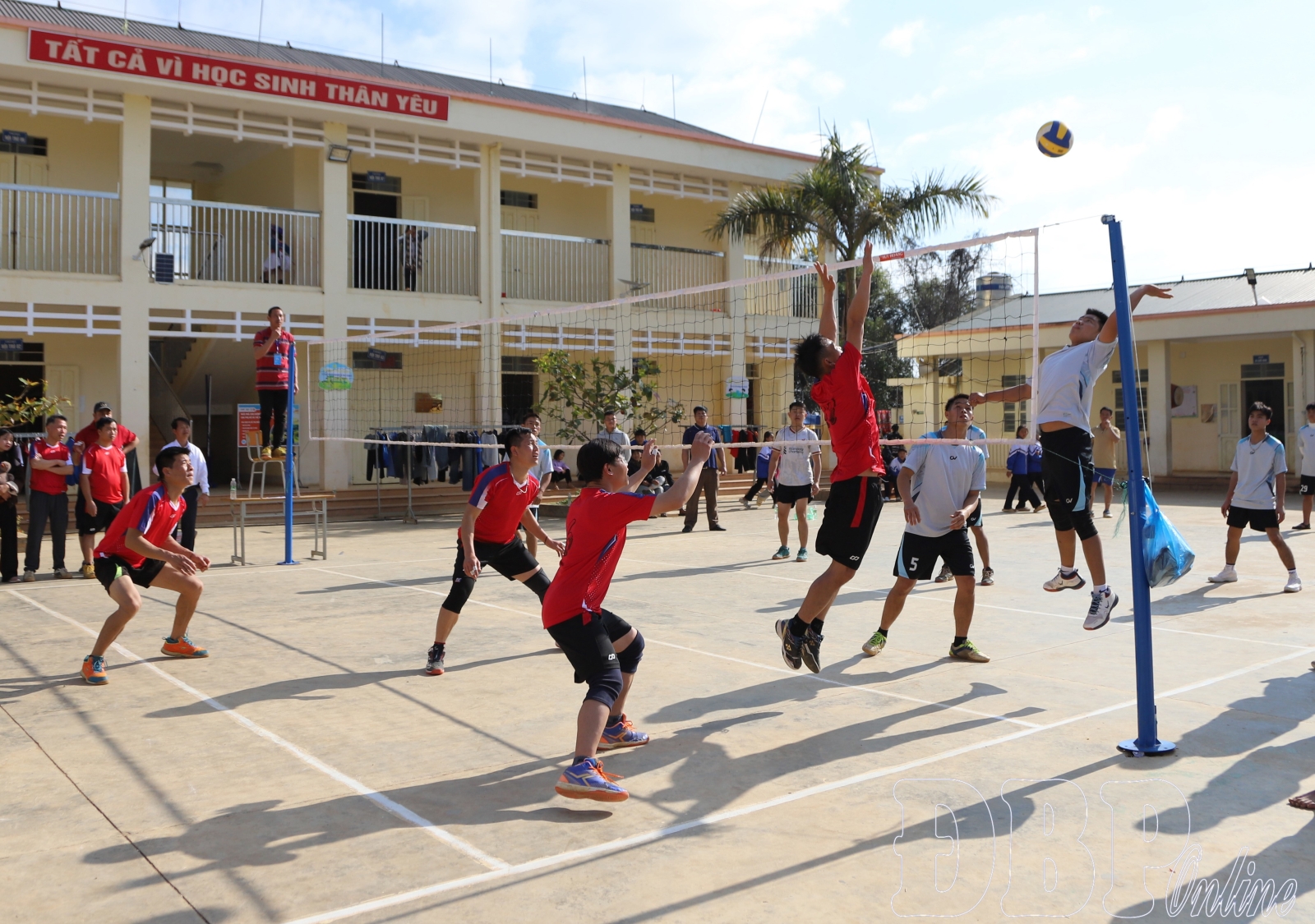 Athletes from Xa Dung commune competing in volleyball during their local sports festival.