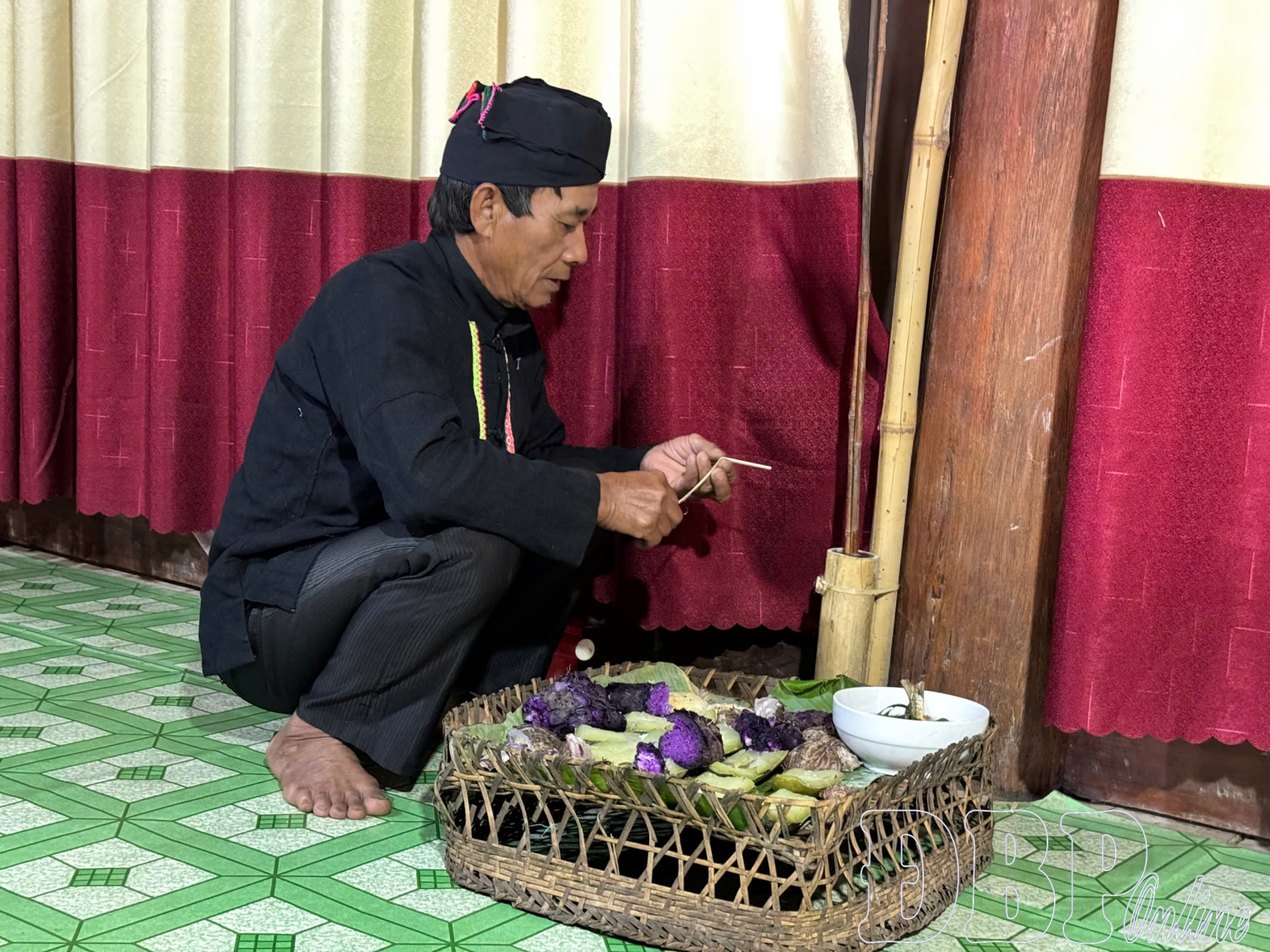 Hù Văn Thịt, Nậm Kè village, is a Cống artisan and also the main shaman performing rituals in the ceremonial part of the Cockscomb Flower Festival. Therefore, witnessing this ritual revived and developed along with community life, Thịt is more excited than anyone else.