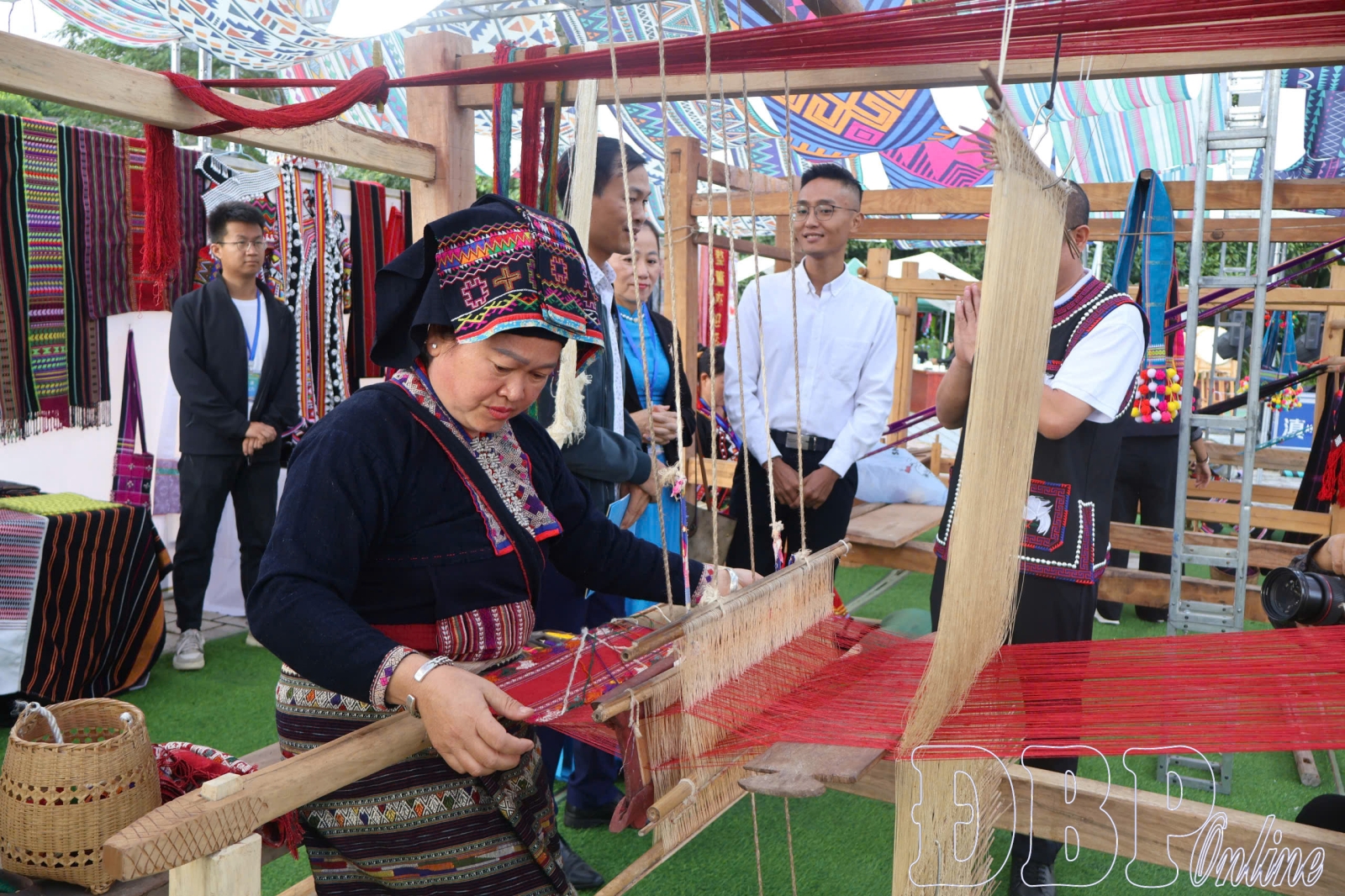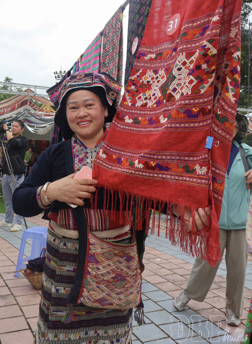 Representing Điện Biên province at the competition were three artisans showcasing the Lao brocade weaving craft from Na Sang II village, Núa Ngam commune. Each product is entirely handwoven from cotton and silk threads through many meticulous stages, demonstrating the dexterity and diligence of the women.