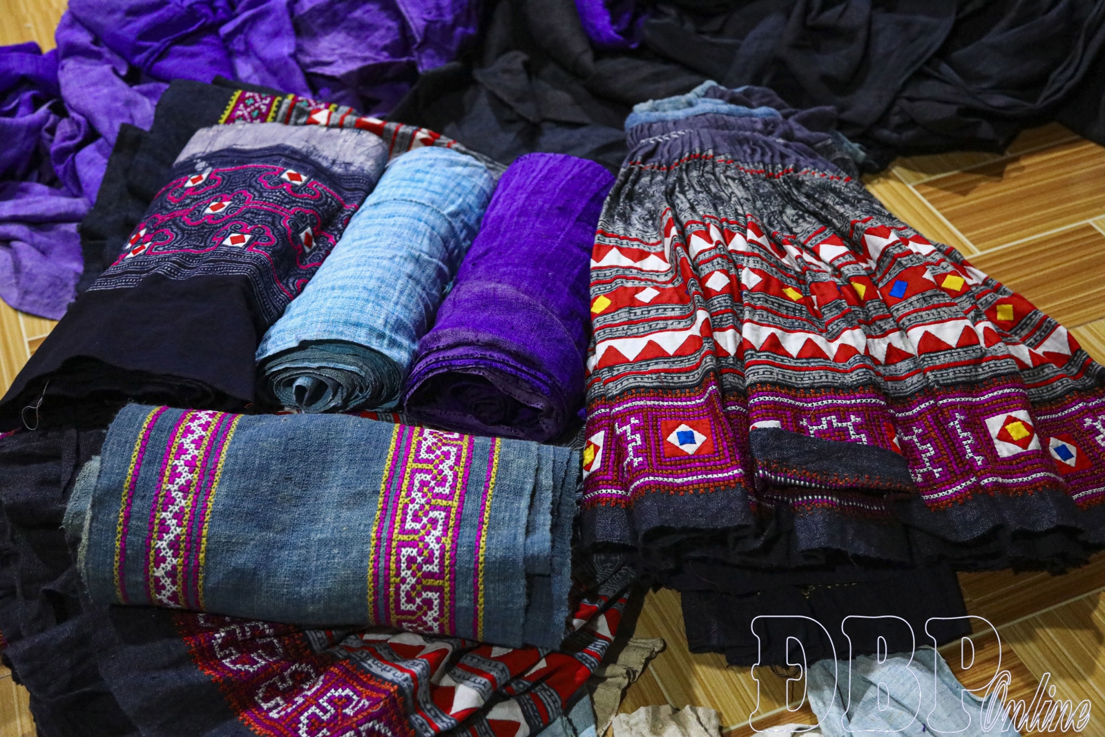 Typically, linen fabric is imported from Hà Giang and Yên Bái. Members receive the fabric and perform various stages: indigo dyeing, beeswax drawing, embroidering, and sewing traditional patterns and motifs to create finished skirts and shirts. Once completed, products are collected and sold to traders outside the province and in countries like Thailand and China. The products are mainly patterned fabrics and skirts, with prices ranging from VND 900,000 - VND 1,500,000 per product. On average, every 2 months, the model completes and ships orders, earning over VND 400 million (excluding costs). Thereby, it helps women participating in the model to have a source of revenue, improving the lives and income of members.