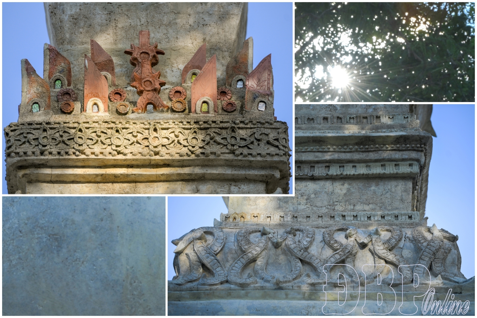 The patterns on the tower’s body are the highlights that create its unique beauty. Pairs of small winding dragons, stylized lotus petals, sun symbols embedded with mirrors reflecting light from all directions... are crafted from terracotta mixed with red, brown, and grey hues. All of this brings an ancient, rustic, yet spirited appearance, reflecting the ingenuity of the highland artisans of the past who knew how to utilize bricks, lime, sand, and molasses - completely indigenous materials - to build a structure that endures over time.