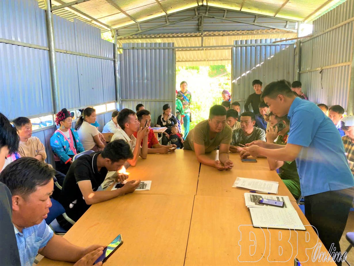 In Mường Lạn commune, once the plan was launched, teams from the Department of Culture and Society, local police, the public service center, social insurance office, Viettel, VNPT, the youth union, and community digital groups in the villages immediately got to work. The program is being implemented directly in villages such as Bon, Pá Nặm, Khén, Thẳm Tọ, Huổi Lướng, Lịch Tở. The campaign’s goal is to help residents install and effectively use digital platforms like Điện Biên Smart, VNeID, VssID, online public service utilities, cashless payments, digital signatures, and basic e-commerce skills.