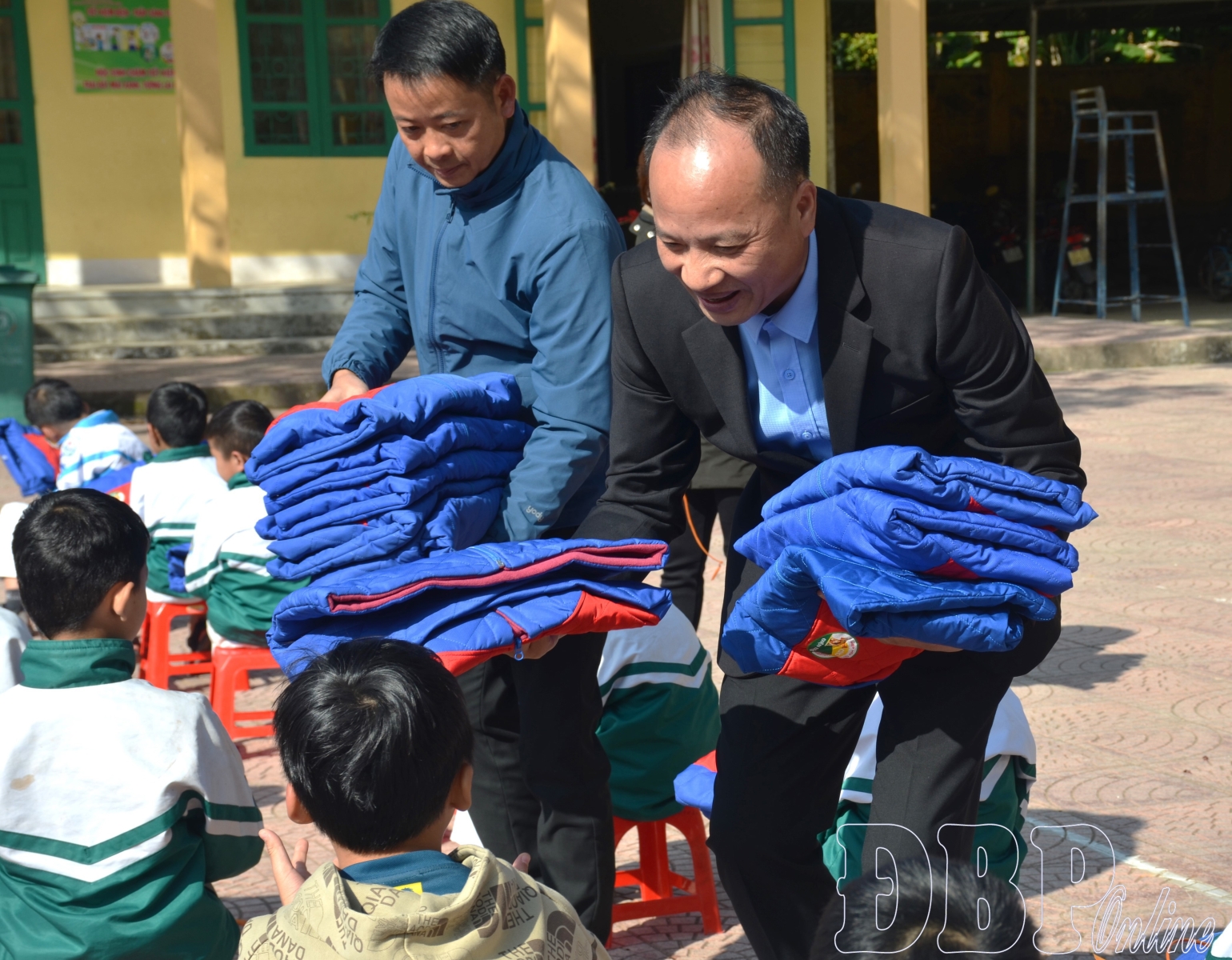 The whole school currently has 806 students, of which more than 200 are from households with difficult circumstances. Although parents always try to care for their children, due to limited conditions, many children only have one warm coat to wear when coming to class. Even on severely cold days, washing clothes becomes a worry because they don’t have clothes to change into. Faced with that reality, the school received practical attention from the provincial Business Association and enterprises and social organizations giving warm clothes to students, bringing great joy to teachers and students.