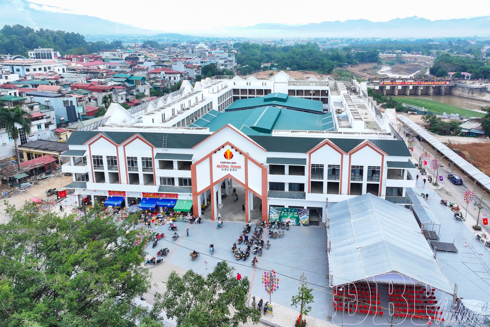 After many months of urgent construction, Mường Thanh Market and Commercial Services today has put on a spacious, modern appearance. Built on an area of 1.8ha with a total investment of over VND 193 billion, the neat rows of kiosks, the open market hall area, and the synchronous infrastructure system create a harmonious overall structure, both meeting trading needs and bearing the breath of a community living space.