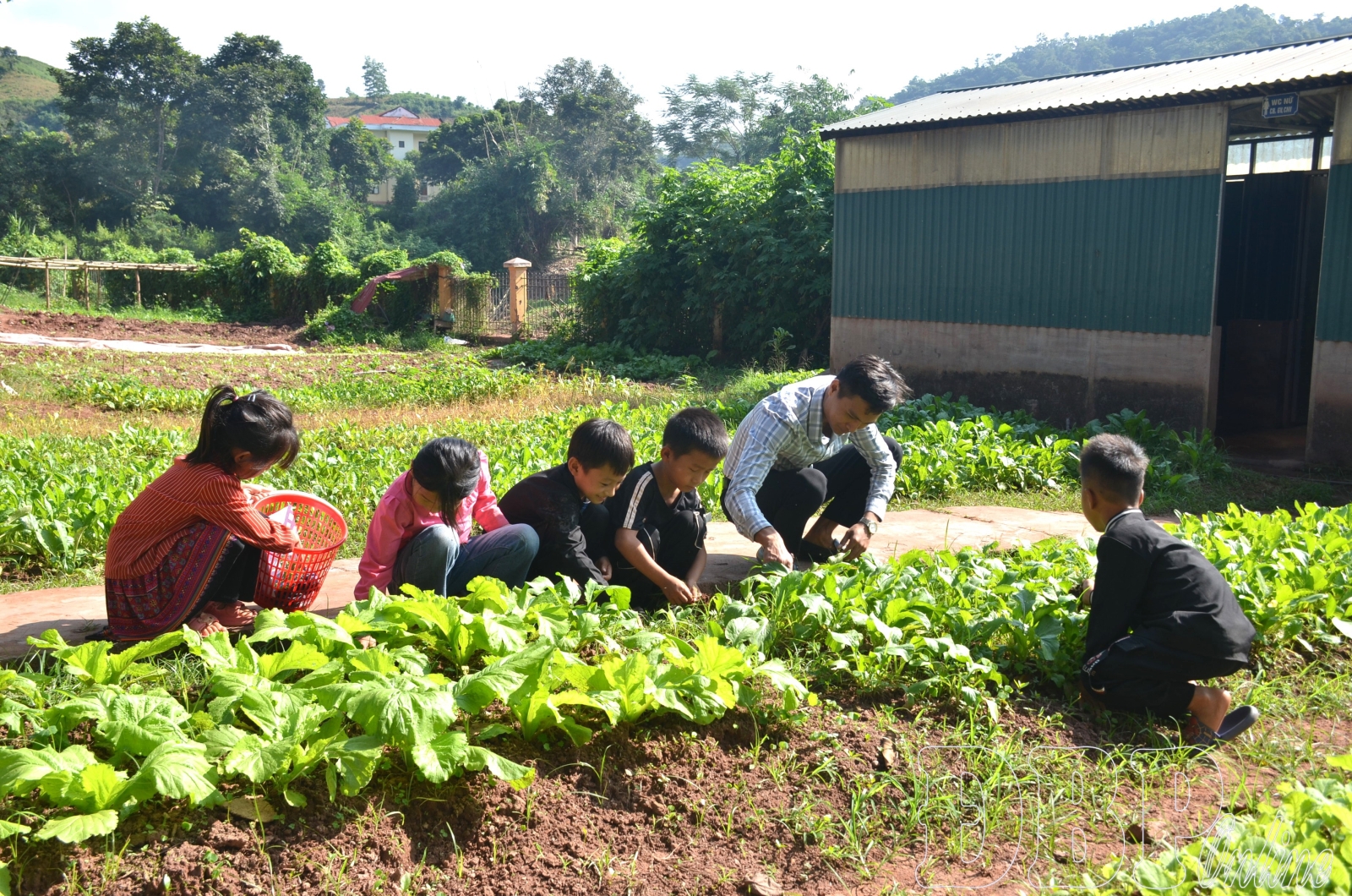 Pointing to rows of thriving vegetables, Nguyễn Thị Kim Nguyên, Principal of Điện Biên Đông Kindergarten, said all produce grown at the school is mainly used for children’s semi-boarding meals. The vegetables are closely monitored by teachers themselves, who plant and care for them without using chemical pesticides, ensuring food safety and hygiene. This allows the school to take full control of nutritional quality while minimizing the risk of unsafe food, one of the potential causes of school -related illnesses.