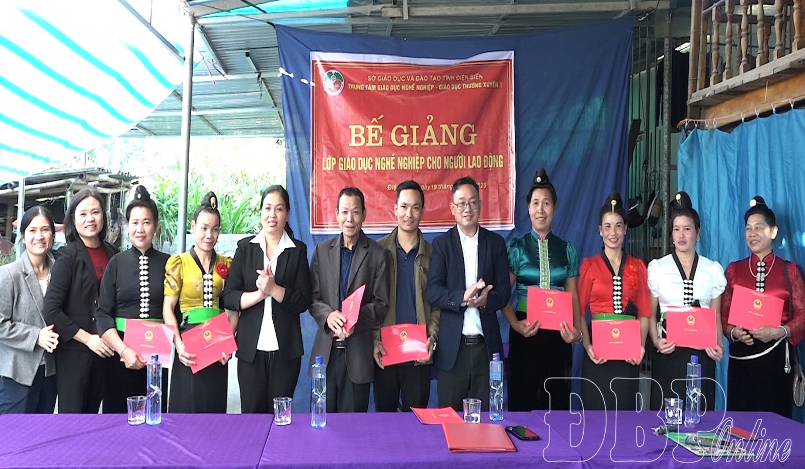 Less than 3 months after deployment, the vocational training class “Techniques for growing, preserving, and preliminary processing of mushrooms” for 35 trainees from Co Cáng and Khá villages (Mường Thanh ward) officially closed. The achieved results are not only shown in the awarded certificates but, more importantly, in the clear change in awareness, vocational skills, and production organization ability of learners, contributing to realizing the goal of vocational training associated with sustainable livelihoods for local workers.