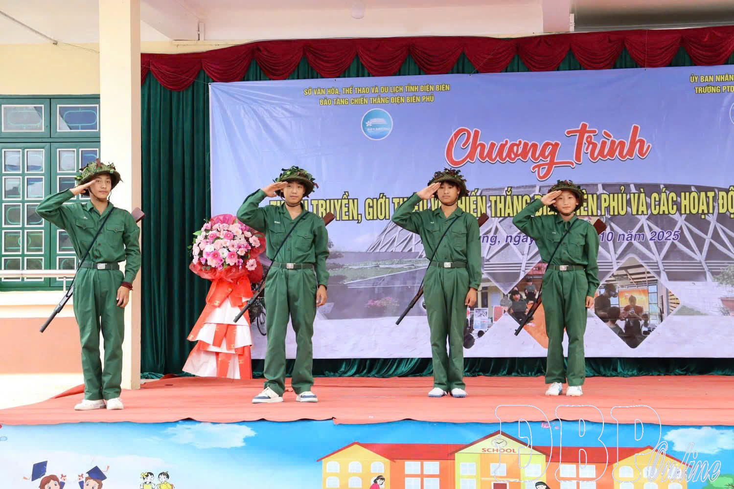 The highlight of the program was the students’ participation in a simulated tour experience. Right on the school grounds, through images, the students were introduced to the Điện Biên Phủ Victory Museum and visited the scenic spots and historical relics of Điện Biên under the guidance of a local tour guide.