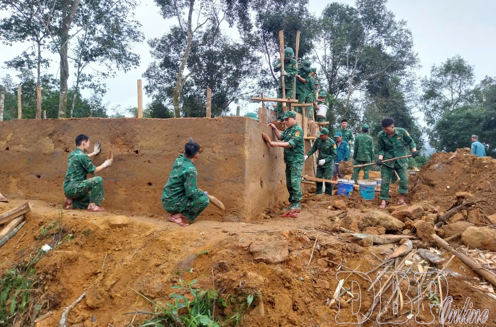 Authorities, residents, and armed forces joined efforts to implement the program through flexible, practical measures. Military units worked with local Party committees, authorities, and mass organizations to promote the program, while also assisting in surveys and identifying households in need. Soldiers from the army, police, and border guard forces helped design homes, transport materials, and directly participate in construction. In border areas, border guard officers and soldiers contributed 312 workdays transporting materials, leveling ground, and building 34 homes. Many ethnic minority communities in mountainous regions live in remote, scattered locations with rugged terrain and difficult access, making it impossible for vehicles to transport building materials. Much of the work had to be done manually, requiring significant effort. The image of soldiers carrying bricks, cement bags, and corrugated iron sheets up steep mountainsides reflects their solidarity and dedication to bringing secure homes to highland and border communities. Their efforts have earned admiration and gratitude from local authorities and residents, contributing greatly to the program’s overall success.