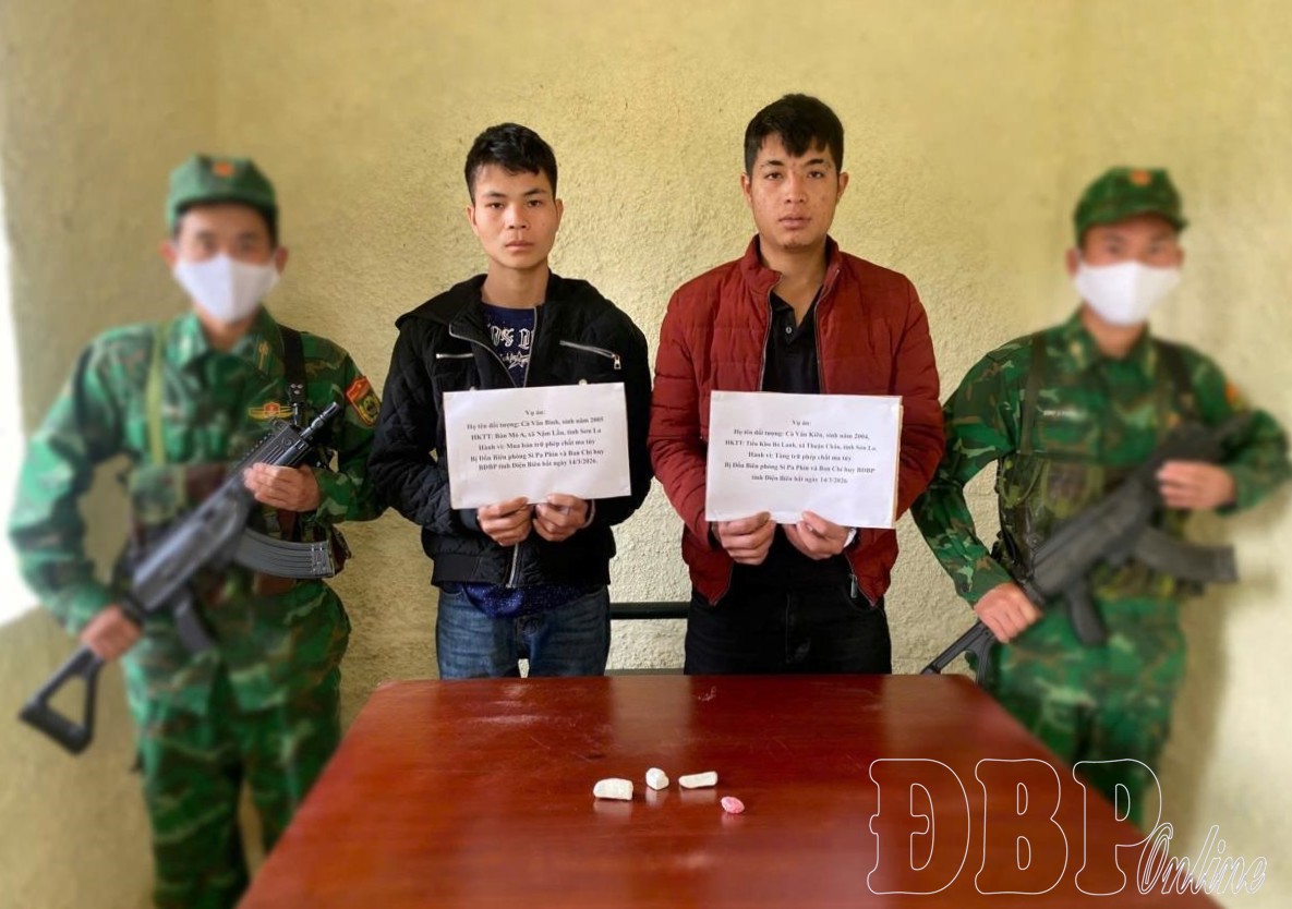 Previously, on March 8, 2026, the provincial border guards coordinated with functional forces to intercept a large-scale illegal transport of synthetic drugs. Around 7:00PM that day, while on duty in Púng Giắt village, Mường Pồn commune, the task force signaled a suspicious young man on a motorbike to stop for inspection. However, the individual failed to comply and accelerated in an attempt to escape. Using professional measures, the forces quickly subdued and successfully arrested the subject, identified as Thào A Dia, born in 2002 and residing in Pú Chả village, Mường Pồn commune.