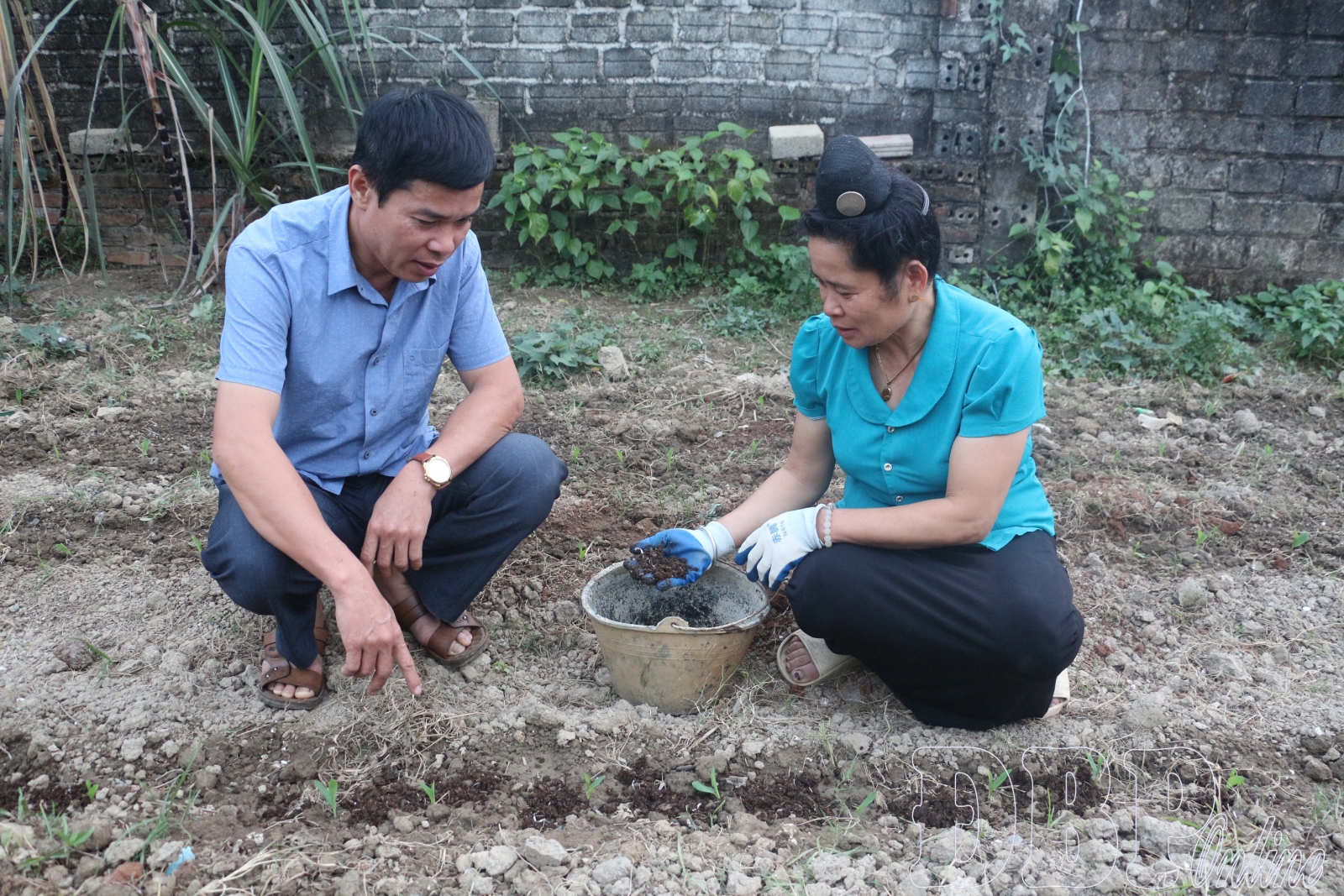 The family of Lò Thị Hoa, Mển village, Thanh Nưa commune, is one of the households participating in the model. Since being guided to classify and utilize organic waste to compost into fertilizer, Hoa has an additional source of fertilizer for crops. The biggest benefit the model brings, according to her, is not only the amount of organic fertilizer obtained but also significantly reducing indiscriminate littering, limiting the amount of waste sent for collection, contributing to creating a fresh living environment for the family and community.