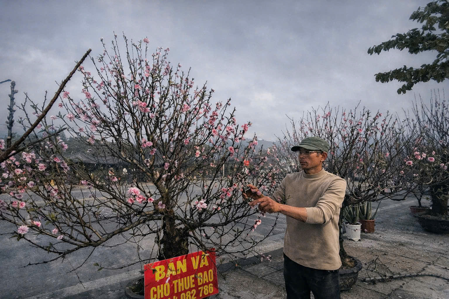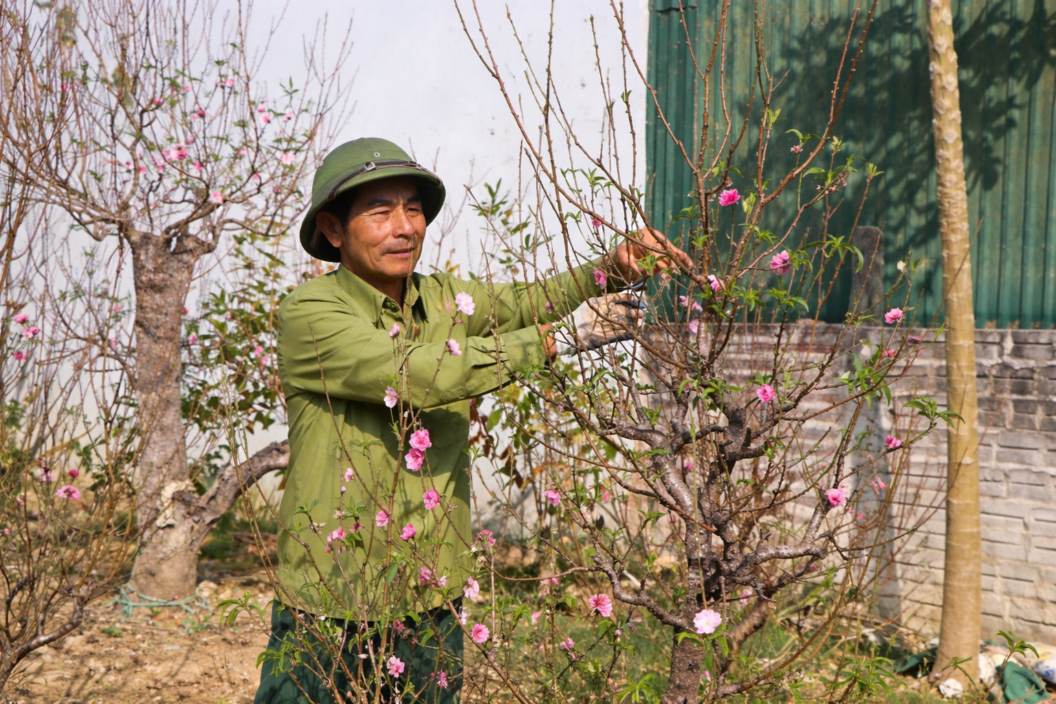 Nguyễn Văn Hùng, a resident of Thanh Nưa commune, manages over 100 rooted peach trees, many of which have been under his care for nearly a decade. In the past, he would sell most of his stock during the weeks leading up to the Lunar New Year (Tết) festival, but he often heard from customers that the trees failed to bloom the following year or simply died. Caring for a rooted peach tree is significantly more complex than a standard branch, requiring specific technical knowledge of watering, fertilizing, and pruning. Even a minor error in care can disrupt the growth cycle and ruin the chances of a successful bloom in the next season.
