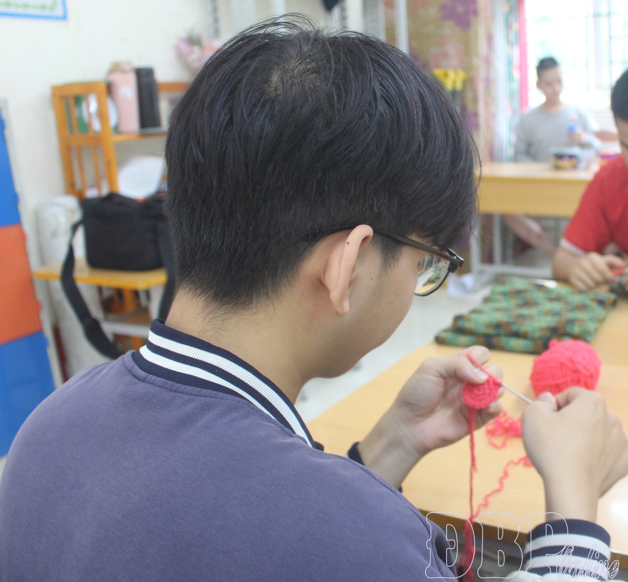 In the moderately sized room on the first floor, the two teachers in charge of the class are diligently sowing every letter, every life skill, and every spark of hope for each student. The class has 10 children, divided into small groups based on their capacity and ability to receive information. One group learns to trace letters, another persistently practices knitting. Another group is being personally guided by the teacher on how to pick bunches of vegetables.
