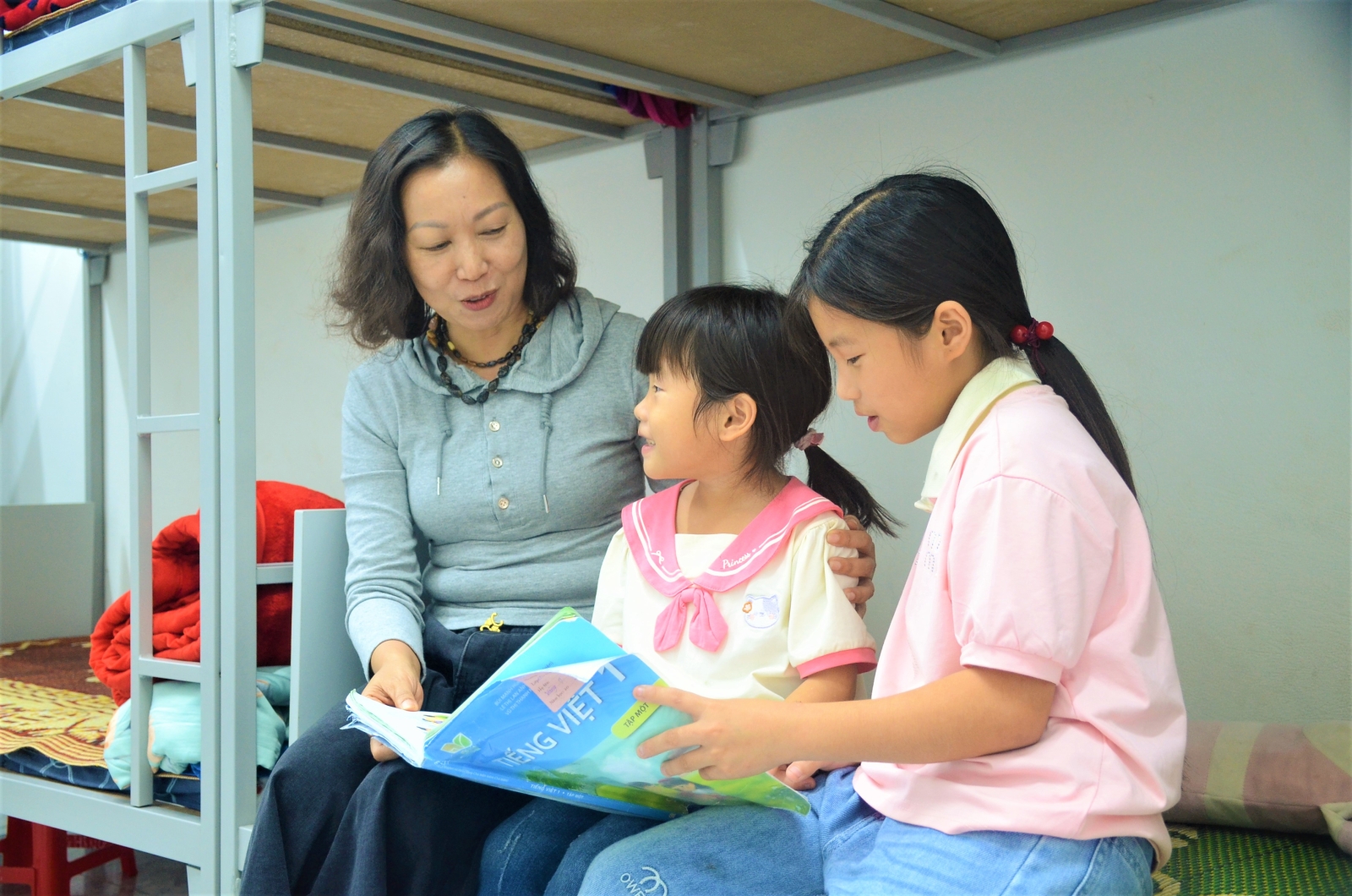 The homesickness is real, but the love in this new place is also real. Here, Sinh truly has a new family. “The ‘aunt’ in charge of the room and the older and younger sisters in the room all love me. Every day, I go to school with my sisters and friends, we live together, and play very comfortably. I sleep very well now and have gained over 1kg,” Sinh shared brightly.