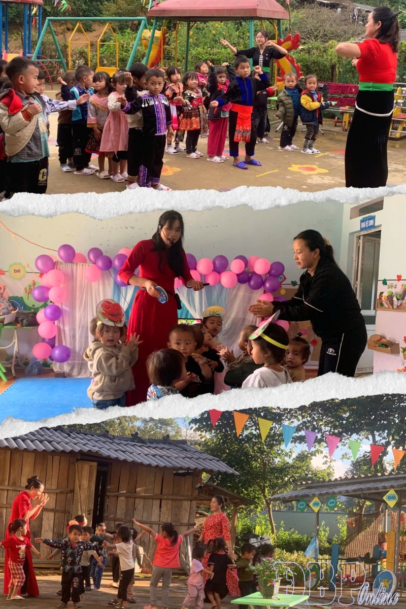 Tìa Dình Kindergarten currently has 41 cadres and teachers; 30 of them regularly work at remote school sites, places where conditions are still lacking in both physical facilities and spiritual life. Although the school has received investment and improvements in classrooms and teaching materials in recent years, the teachers’ journey of sticking to the villages remains full of hardship.