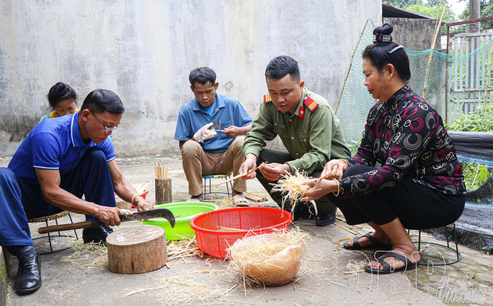 Sergeant Giàng A Thắng shared that as a dialysis patient, he understands the exhaustion of those in the same situation. Patients in the neighborhood come from highland and border communes with difficult economic conditions, lacking the strength for heavy labor. He worried about what to do to ease their burden. Utilizing the familiar skill of highland people in whittling bamboo chopsticks, he hoped to help everyone earn extra income and motivation to overcome their illness daily. From that idea, Thắng organized production stages clearly: some prepare bamboo, others whittle, and others handle processing, finishing, and packaging. Thanks to specific assignments, raw bamboo bundles gradually became finished products through the collective hands of the entire neighborhood. Thắng also used personal social media to promote and find markets.