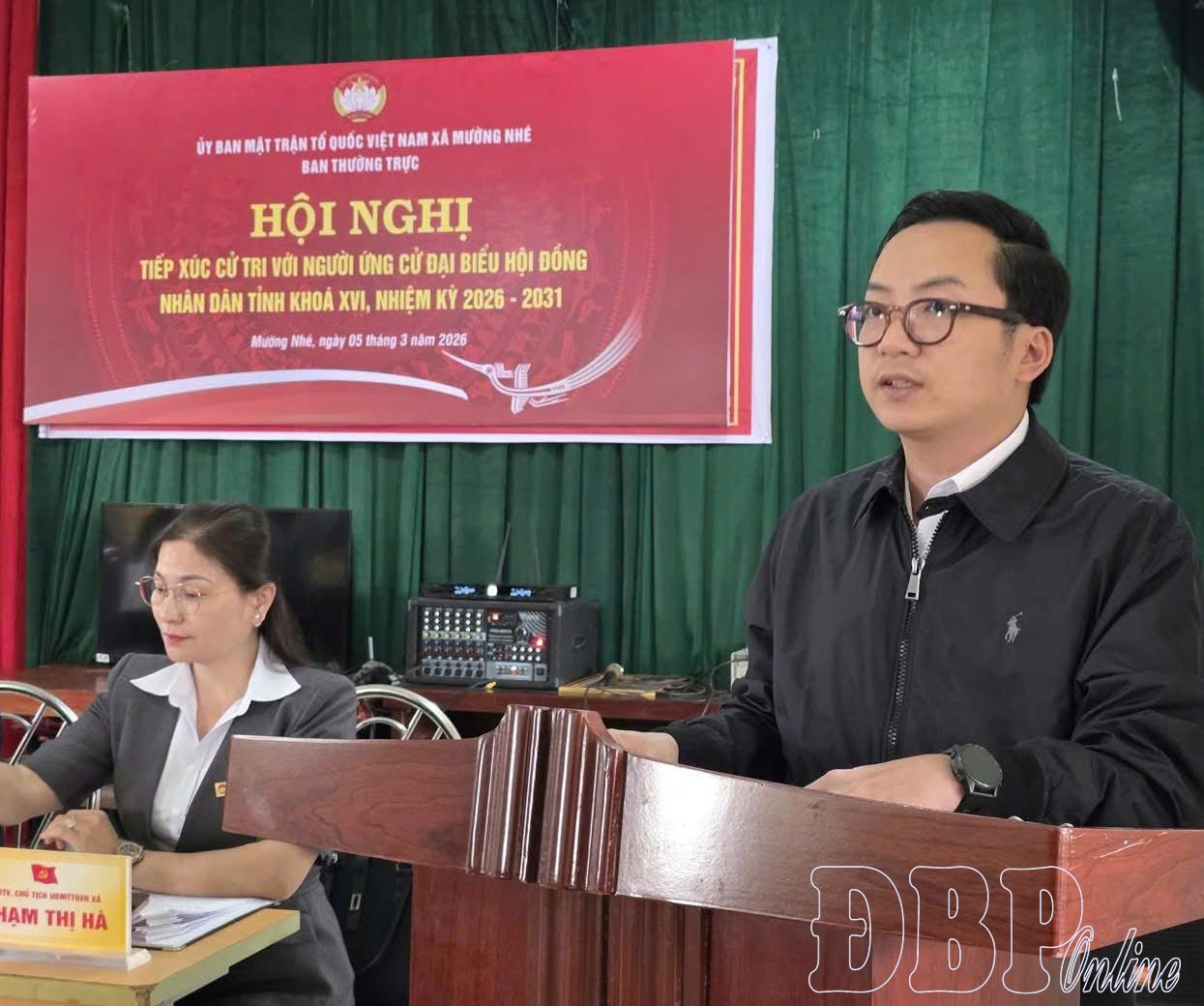 Among the prominent young figures running for office this term is Mùa Chiến Thắng, Vice Chairman of the provincial Vietnam Fatherland Front and Secretary of the provincial Youth Union. Standing as a candidate for the provincial People’s Council in Polling Area No.8, covering the communes of Sín Thầu, Mường Nhé, Mường Toong, Nậm Kè, and Quảng Lâm, he views his candidacy as both a great honor and a heavy responsibility. For him, this is the ultimate platform to channel the intelligence and energy of the youth into provincial development. He has pledged that, if elected, he will strive to be a dedicated voice for the people, particularly the younger generation, to build a more prosperous Điện Biên.